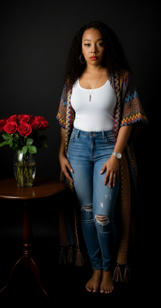 THE NYCHOLE ELLE - CARDIGAN KIMONO TASSEL BROWN - ONE SIZE - OVERSIZE