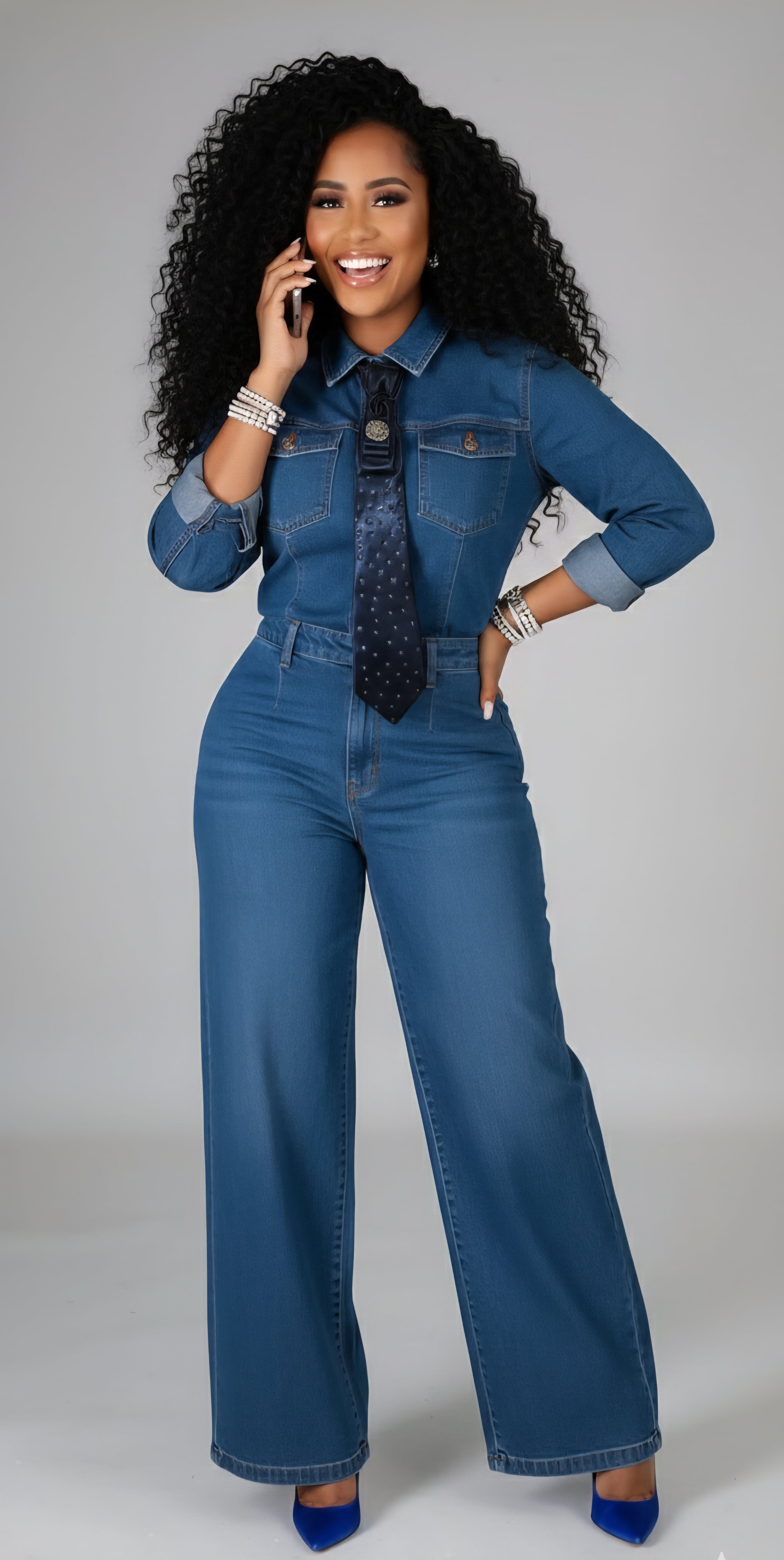 Perfect for denim-on-denim looks, power suits, or any moment you want to add a polished, feminine twist to a classic accessory. This tie is where sophistication meets sparkle—confident, unique, and unmistakably chic.