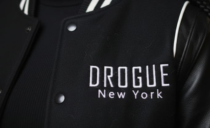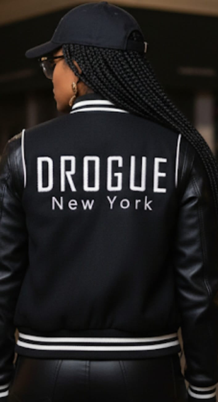 Represent that DROGUE New York. Designed with a classic varsity silhouette, leather sleeves, and soft wool-blend body, this jacket brings comfort, durability, and undeniable boss status.
